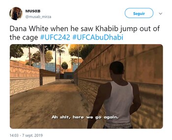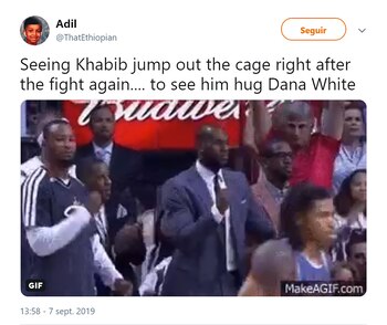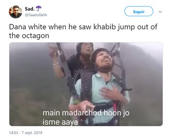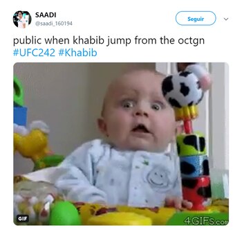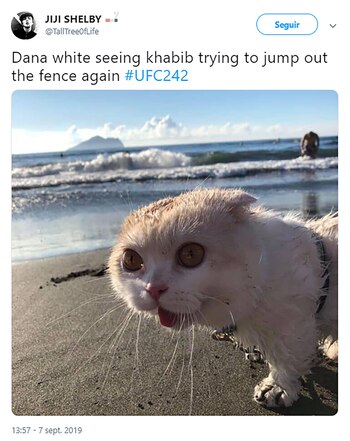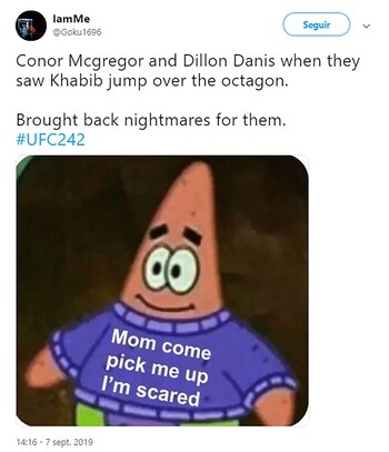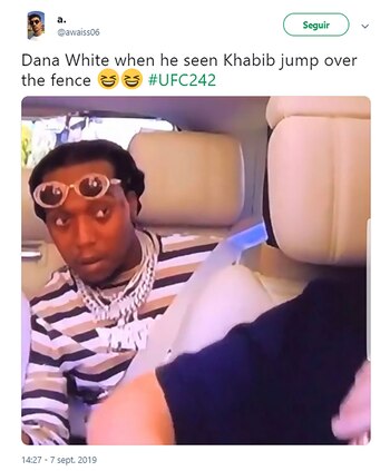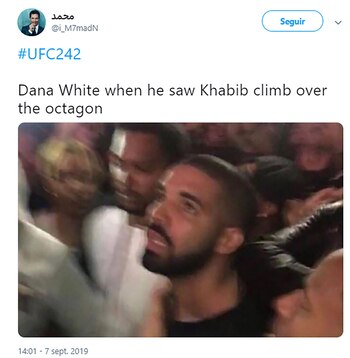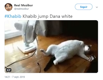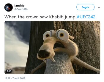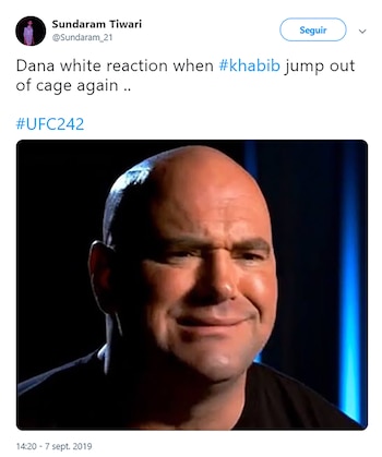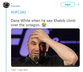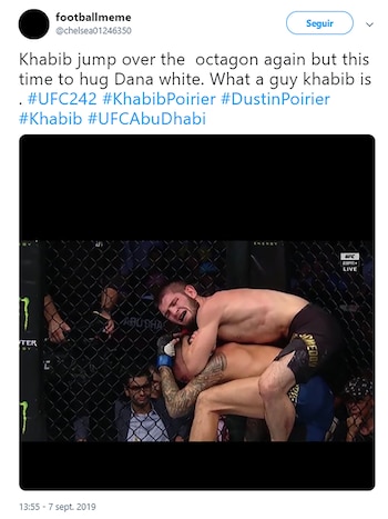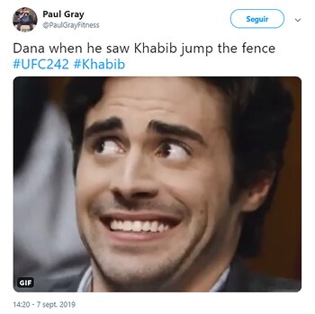 Sin embargo, no fueron pocos los usuarios que repararon en lo hecho por Khabib y bromearon son su salto fuera del octágono y los segundos de tensión que ocasionó.
