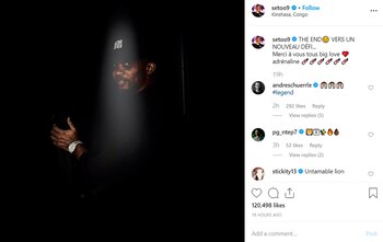 "Gracias a todos, big love, adrenalina", escribió el ex jugador del Real Madrid y del FC Barcelona en su cuenta oficial. Unas palabras acompañadas de una foto de Eto'o vestido de negro y con gorro, sobre fondo del mismo color, y un halo de luz blanca iluminando su rostro.