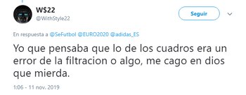 “Nuestro fútbol nos diferencia, nuestro fútbol nos une. Les presentamos la nueva equipación de la Selección de fútbol de España con la que disputaremos la próxima Euro 2020”, fue el mensaje que lanzó el ente regulador del fútbol español junto a las imágenes de la camiseta en cuestión.