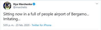 Evidentemente ofuscado por la decisión, Marchenko publicó horas más tarde: “Estoy sentado en un aeropuerto lleno de gente en Bérgamo. Es irritante”.