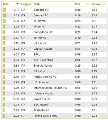 Clubes más violentos de la Serie A