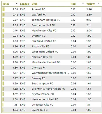 Clubes más violentos de la Premier League