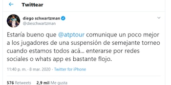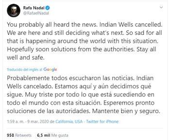 La cancelación del primer Masters 1000 de la temporada y el torneo más importante detrás de los cuatro Grand Slams por el coronavirus es la primera que afecta a un evento deportivo de importancia.