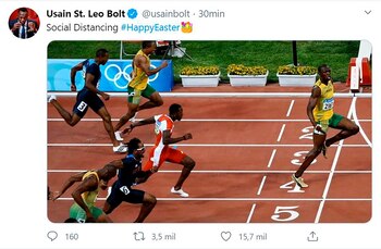 El ex velocista Usain Bolt respaldó esta medida y lo hizo a través de una divertida publicación en sus redes sociales. Con el objetivo de generar conciencia, el jamaiquino compartió una foto en la que se lo ve ganando una carrera y sacando varios metros de ventaja por sobre sus perseguidores. “Distanciamiento social”, escribió, y agregó un mensaje de Felices Pascuas para sus seguidores.