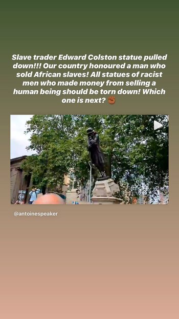 “¡La estatua del comerciante de esclavos Edward Colston fue derribada! ¡Nuestro país ha honrado a un hombre que vendió esclavos africanos! Todas las estatuas de hombres racistas que hicieron dinero vendiendo a humanos deberían ser derribadas. ¿Quién es el próximo?”, publicó el inglés de 35 años en las redes sociales este lunes.