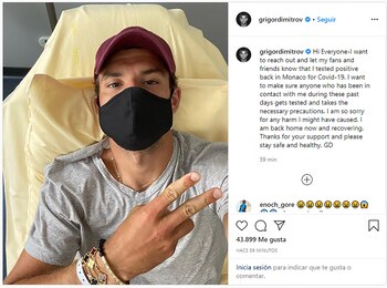 “Hola a todos: quiero comunicarme y hacerles saber a mis fanáticos y amigos que obtuve un resultado positivo en Mónaco de Covid-19. Quiero asegurarme de que cualquier persona que haya estado en contacto conmigo durante estos últimos días sea examinada y tome las precauciones necesarias. Lamento mucho cualquier daño que pueda haber causado. Estoy de vuelta en casa ahora y me estoy recuperando. Gracias por su apoyo y manténgase seguros y saludables”, escribió el tenista búlgaro en su perfil de Instagram.
