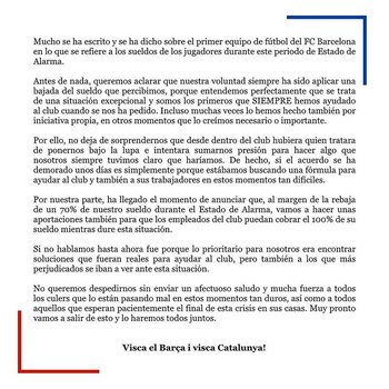 Según las propias palabras de Lionel Messi, el plantel siempre estuvo dispuesto a aceptar una rebaja en los salarios producto de la crisis por la pandemia de coronavirus. Sin embargo, a la hora de comunicarlo las partes cometieron un grueso error y trascendió todo lo contrario. Esto generó que La Pulga comunicara nuevamente a través de su cuenta de Instagram cómo era el cuadro de situación, hecho que trajo a primera plana los problemas internos con la actual directiva.