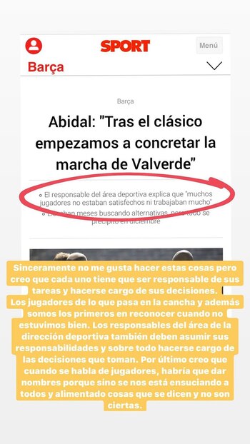 Por supuesto, esta frase motivó a una dura respuesta del capitán del equipo mediante un breve comunicado en Instagram: “Sinceramente no me gusta hacer estas cosas, pero creo que cada uno debe ser responsable de sus tareas y hacerse cargo de sus decisiones. Los jugadores de lo que pasa en la cancha y además somos los primeros en reconocer cuando no estuvimos bien. los responsables del área de la dirección deportiva también deben asumir sus responsabilidades y sobre todo hacerse cargo de las decisiones que toman. Por último creo que cuando se habla de jugadores habría que dar nombres porque sino se nos está ensuciando a todos y alimentando cosas que se dicen y no son ciertas”.
