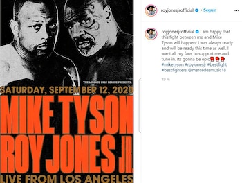 “Estoy feliz de que esta pelea entre Mike Tyson y yo suceda! Siempre estuve listo y también lo estaré esta vez. Quiero que todos mis fanáticos me apoyen y sintonicen. Será épico”, exclamó el ex boxeador a través de una publicación en su cuenta de Instagram.