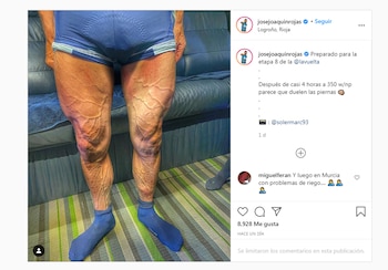 El ciclista murciano de 35 años, integrante del Movistar Team, publicó en su perfil de Instagram una fotografía que refleja a la perfección la extrema dureza que tiene la competencia disputada en territorio español.