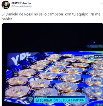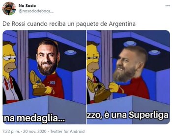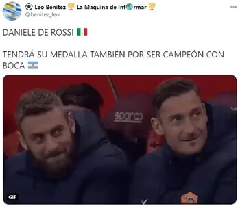 El futbolista europeo estuvo presente en un extenso tramo de aquella competición, pero se fue antes: en enero de 2020, luego de tan solo siete meses en el club, anunció que dejaba Boca y que se retiraba del fútbol para volver a su país natal y poder pasar más tiempo con su familia. El paso de De Rossi por el elenco de la ribera estuvo lejos de ser el esperado ya que las lesiones lo alejaron de las canchas y le impidieron mostrar su mejor nivel. Tan solo llegó a jugar siete partidos y marcó un gol (en Copa Argentina). Aún a pesar de esa breve estadía, su nombre estuvo entre los galardonados este viernes, ¿Le harán llegar la medalla hasta el Viejo Continente?
