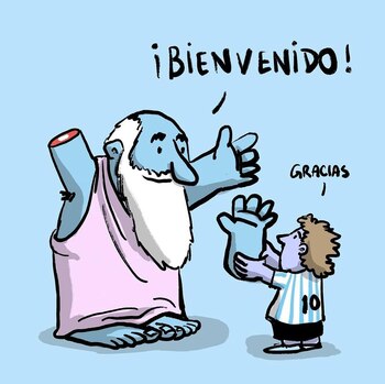 En las redes sociales millones de personas hicieron tendencia el apellido más famoso del mundo y a su vez colmaron los perfiles con imágenes en homenaje al futbolista más popular de la historia. Así, muchos artistas optaron por graficar la imagen de Diego Maradona llegando al cielo y devolviéndole la mano con la que le hizo el gol a Inglaterra en 1986 a Dios.