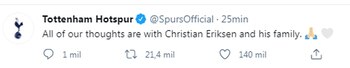 LOS MENSAJES DEL MUNDO DEL FÚTBOL PARA ERIKSEN