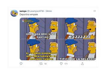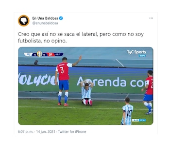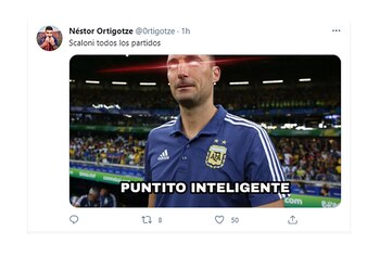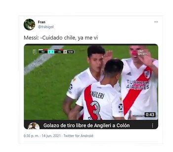 Las redes sociales siguieron de cerca lo ocurrido en el Estadio Nilton Santos de Río de Janeiro y los usuarios comentaron el partido minuto a minuto con los clásicos memes. ¿El principal foco? La emoción que genera cada rendimiento destacado de Messi y las críticas al cuarteto defensivo que compusieron Gonzalo Montiel, Lucas Martínez Quarta, Nicolás Otamendi y Nicolás Tagliafico. Estos últimos dos futbolistas tuvieron un rol central en el penal que significó la igualdad de La Roja.