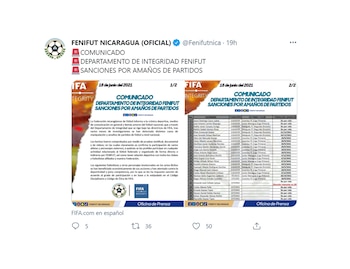 Una red de “amaños de partidos de fútbol” fue descubierta en Nicaragua, y hasta 19 jugadores fueron suspendidos de toda actividad en este deporte, según informó este viernes la Federación Nicaragüense de Fútbol (Fenifut) a través de sus redes sociales oficiales. También quedaron vetados otras ocho personas “externas” al balompié de este país.