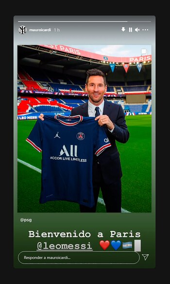 Fue la segunda publicación que realizó Icardi desde la llegada de Messi a París, luego de una imagen suya durante el entrenamiento. Su futuro en el PSG no está claro y podría emigrar luego de tres temporadas. Uno de los equipos que mostró interés fue la Roma que comanda José Mourinho.