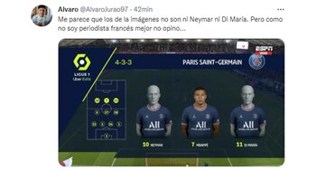 Otro de los focos de las bromas fue la placa de las formaciones iniciales de la transmisión del encuentro. Por algún motivo que no fue explicado, varios futbolistas, incluidos Di María y Neymar, no tenían rostro en la imagen y en lugar de ellos había. Fue entonces que los usuarios crearon memes comparando la imagen con algunos personajes famosos de series y películas o incluso otros señalaron que hay “muñecos” jugando en la Ligue 1.