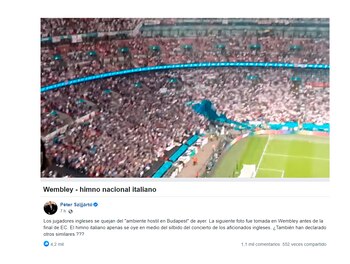 No obstante, el ministro de Relaciones Exteriores de Hungría respondió a todas las quejas de racismo comparándolo con la actitud que los fanáticos de Inglaterra tuvieron en la final de la EURO 2020, cuando abuchean el himno nacional italiano. Peter Sziijarto publicó un video en su cuenta de Facebook donde se ve como silban el himno de Italia en Wembley. “Los jugadores de Inglaterra se quejan de la atmósfera hostil de anoche en Budapest... ¿Hicieron comentarios similares en ese entonces?”, replicó.