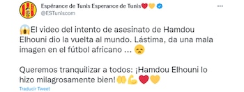 “El video del intento de asesinato de Hamdou Elhouni dio la vuelta al mundo. Lástima, da mala imagen en el fútbol africano... Queremos tranquilizar a todos: ¡Hamdou Elhouni milagrosamente está bien!”, escribieron en las redes sociales desde su club.