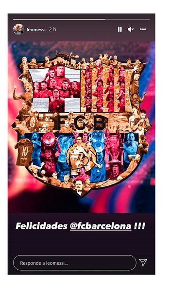A través de una historia de Instagram, Messi saludó al Barcelona en el día del aniversario número 122° de su fundación. Compartió la publicación que hizo el elenco catalán y le deseó felicidades en esta fecha tan especial para la institución y para todos los culés.