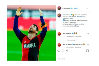 Ese mensaje pudo ser una suerte de devolución de gentilezas luego del posteo que el Barça le había dedicado unas horas antes al actual jugador del PSG de Francia. “Se cumple un año del precioso homenaje de Leo a Diego”, fue el mensaje del Blaugrana, recordando aquella emotiva dedicatoria que el delantero le hizo a Maradona pocos días después de su muerte. En aquella ocasión, tras marcar un gol en la victoria ante el Osasuna, la Pulga se puso una vieja camiseta de Newell’s que le había obsequiado Pelusa.