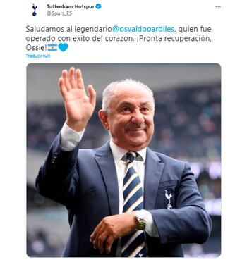 “El club desea expresar sus mejores deseos a nuestro embajador y ex jugador legendario Osvaldo Ardiles, quien se sometió con éxito a una cirugía cardíaca esta semana y ahora se está recuperando en el hospital. ¡Te deseamos una pronta recuperación, Ossie!”, decía la publicación de los Spurs en las redes sociales.