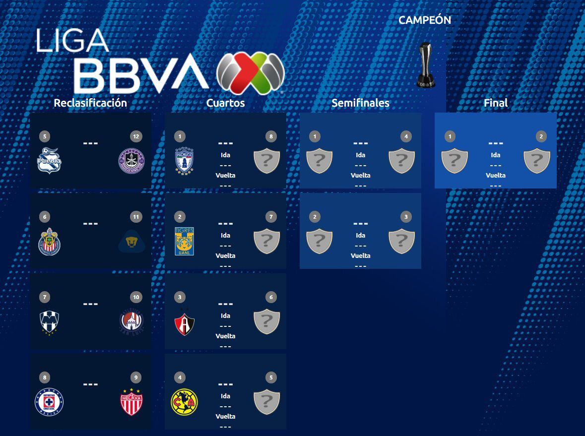 En el transcurso de la semana se darán a conocer los detalles de los horarios y la fecha en las que se jugarán los partidos de ida y vuelta de los cuartos de final. Cabe recordar que los primeros partidos se jugarán en los estadios de los últimos clubes que acaban de clasificar, es decir que aquellos que tuvieron su pase automático a liguilla serán quienes tengan el privilegio de jugar la vuelta en su estadio.