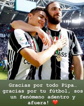 ”Gracias por todo, Pipa. Gracias por tu fútbol, sos un fenómeno adentro y afuera”, sostuvo Paulo Dybala.