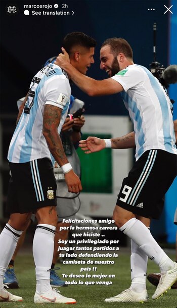 “Felicitaciones amigo por la hermosa carrera que hiciste. Soy un privilegiado por haber jugado tantos partidos a tu lado defendiendo la camiseta de nuestro país. Te deseo lo mejor en todo lo que venga”, contó Marcos Rojo.