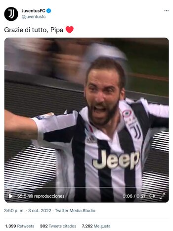 “Grazie di tutto, Pipa”, fue la dedicatoria de la Juventus (149 cotejos, 66 gritos y 16 asistencias). En tanto que el Napoli (146 encuentros, 91 tantos y 26 asistencias), ni el Milan (22 encuentros, 8 goles y 3 asistencias) aún no saludaron al argentino. En el Calcio jugó siete temporadas.