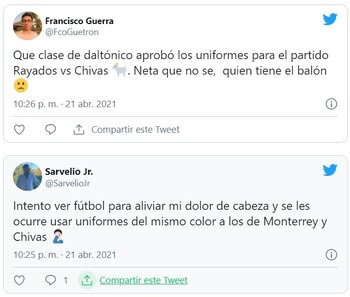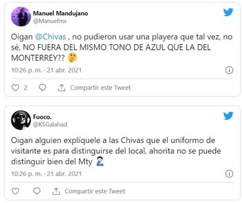 Algunos usuarios indicaron en tono de broma que Chivas cambió los colores de su indumentaria con la finalidad de confundir a los elementos del conjunto de Monterrey.