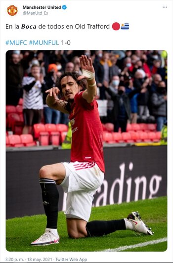 Apenas celebrada la conquista de la estrella internacional, en la cuenta oficial de Twitter del club inglés se leyó una frase que fue dirigida al Xeneize. “En la Boca de todos en Old Trafford”, fue la publicación junto a la imagen de su héroe festejando su obra.