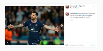 “Vamooosss!!! Era importante ganar hoy en la Champions League y fuimos capaces de darlo vuelta!”, celebró La Pulga en su cuenta de Instagram.