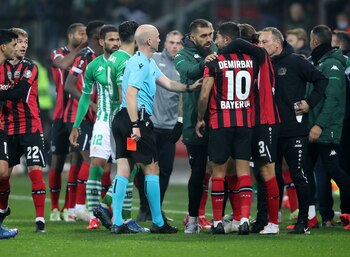 Un minuto más tarde llegaron los problemas. Rodríguez se la devolvió a Fekir quien forcejeó con Kerem Demirbay a quien lo tomó del cuelo, y de inmediato se metieron otros jugadores del Bayer. Hubo empujones, manotazos, caídas al piso y mucha tensión. Guido Rodríguez, que fue uno de los primeros en intentar evitar que pasara a mayores, terminó en el césped, empujado por un alemán. Del otro lado, Exequiel Palacios, que había ingresado a los 68′ para el Bayer, buscó tranquilizar el tema. Lucas Alario estuvo en el banco y no jugó.