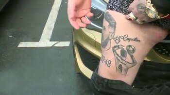 Si bien en el dibujo plasmado en el muslo derecho se pudo ver un gran escudo del Real Madrid y la histórica frase "Hala Madrid", el rostro que se encuentra al lado no terminó siendo del todo parecido al del capitán del equipo blanco Sergio Ramos.