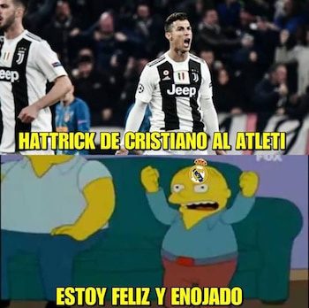 En los octavos de final de la vigente edición de la Champions League ninguna eliminatoria parece estar definida. Tras las remontadas del Manchester United y el Ajax, llegó la de la Juventus ante el Atlético Madrid. Con tres goles de Cristiano Ronaldo, el elenco italiano logró revertir el 2-0 encajado en el partido de ida y accedió a la siguiente fase. El resultado y las incidencias del partido motivaron a los tradicionales memes en las redes sociales.
