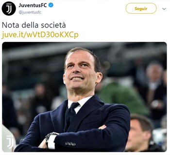 "Massimiliano Allegri no se sentará en el banco de la Juventus en la temporada 2019/2020. El entrenador y el presidente, Andrea Agnelli, se reunirán con los medios de comunicación en una conferencia de prensa, que se celebrará mañana, sábado 18 de mayo, a las 2:00 pm (12:00 pm GMT) en la sala de conferencias del Estadio Allianz.