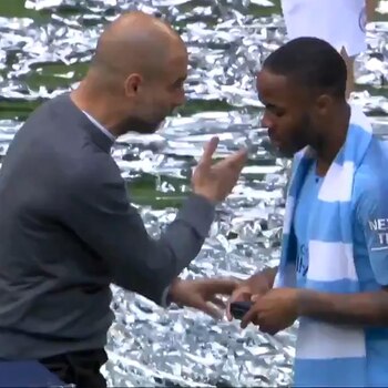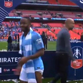 Una vez consumada la aplastante victoria por 6-0 en la final ante Watford, se desató el delirio entre los jugadores y el cuerpo técnico del elenco "Ciudadano" en el campo de juego del estadio de Wembley. Pero, en plena fiesta, Guardiola se acercó a Raheem Sterling (autor de dos tantos en la aplastante goleada) y comenzó a darle indicaciones. El delantero escuchó atentamente las palabras del entrenador y el intercambio terminó con una sonrisa y un saludo entre ambos.