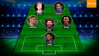 La otra variante podría ser el 4-2-1-3 que tendría los mismos nombres en el mediocampo pero "La pulga" haría de enganche en una delantera en la que el uruguayo sería el centro atacante y Neymar y Griezmann acompañarían por los costados pero más retrasados.