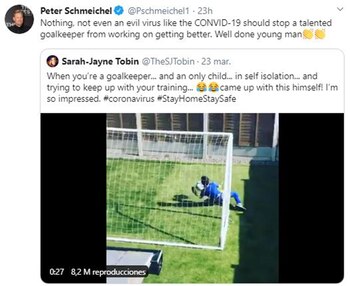 Otro de los mensajes emotivos fue del ex guardameta danés Peter Schmeichel, leyenda del Manchester United. “Ni siquiera un virus maligno como el CONVID-19 debería impedir que un arquero talentoso trabaje para mejorar. Bien hecho niño”, fueron las palabras que le dedicó uno de los más grandes porteros que tuvo el fútbol inglés.