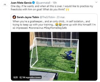 “¡Me encanta!”, escribió el español David De Gea, actual portero del Manchester United. Su compatriota y compañero de equipo Juan Mata fue un poco más allá e hizo una propuesta: “Un día, si él quiere, y cuando todo esto termine, me gustaría practicar mis tiros libres con él en el arco... ¿Qué piensas?”