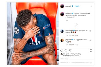 Una vez terminado el encuentro, Neymar se tomó algunas horas para procesar su frustración y luego se volcó a las redes sociales para expresar su tristeza por la derrota que le impidió conquistar la segunda Champions de su carrera (la única hasta el momento la ganó con el Barcelona en el 2015).