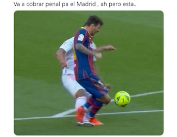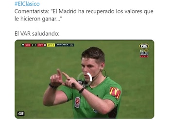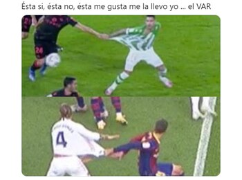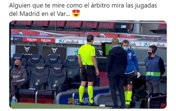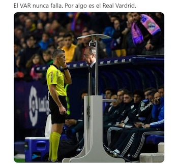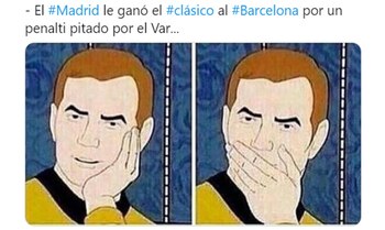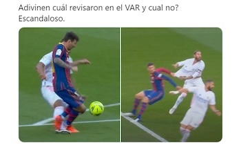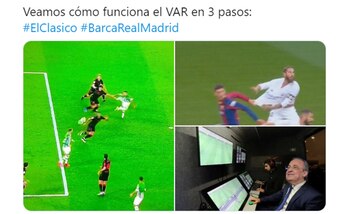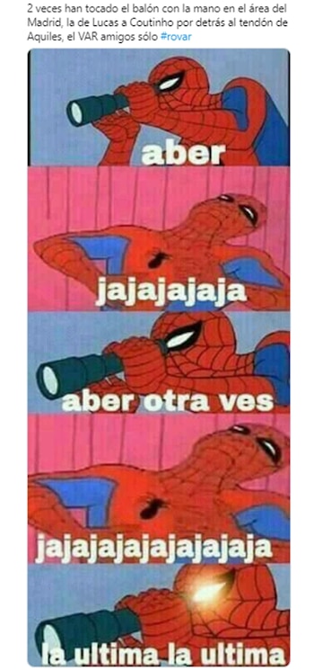 “Adivinen cuál revisaron y cuál no? Escandaloso”, dijo la cuenta Team Leo Messi. Por su parte, otro simpatizante de los culés fue contundente en su mensaje: “¿De qué sirve el VAR si la última decisión la tiene la interpretación del árbitro?”. También hubieron memes más graciosos que apuntaron a la influencia del presidente de la institución madridista, Florentino Pérez, y uno con el personaje de Disney, Mickey, como protagonista.