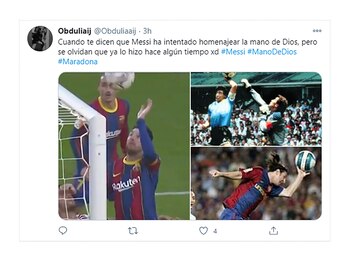 La imagen de la Pulga con el brazo en alto intentando conectar el balón hizo que inmediatamente muchos fanáticos compararan esa acción con la de aquel gol que Diego Maradona le marcó a Inglaterra en el Mundial de México 1986. Fue tan solo un segundo en el cual el capitán de la selección argentino estuvo cerca de emular aquella famosa “Mano de Dios”. En las redes sociales, los usuarios no tardaron en remarcar el parecido entre ambas acciones y algunos hasta se preguntaron si el rosarino lo hizo con la intención de homenajear al DT que lo dirigió en el Mundial de Sudáfrica 2010.