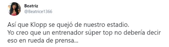 “Por lo menos Anfield es un estadio de verdad”, remarcó el ex técnico del Borussia Dortmund y trazó un paralelismo con aquella épica remontada que llevaron a cabo frente al FC Barcelona en 2019.