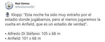 En este contexto, el entrenador de los Reds se mostró un tanto disgustado en la previa por el terreno de juego en el que se produjo la derrota, después de asegurar que el Estadio Alfredo Di Stefano “es un campo de entrenamiento”.