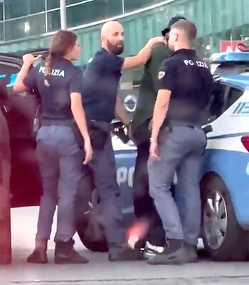 Pero en cuestión de segundos, uno de los policías pareció haber recibido la información de que no se trataba del hombre que estaban buscando, sino que a quién estaban registrando era a un futbolista del Milan.