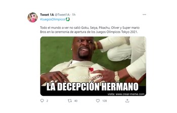 No hay evento de gran escala que no sea comentado en las redes sociales y la ceremonia de apertura de los Juegos Olímpicos de Tokio no fueron la excepción. Muchos usuarios aprovecharon la ocasión para emplear su ingenio y divertirse con memes alusivos a cada momento que se vivió en la inauguración que se llevó a cabo en la capital japonesa.