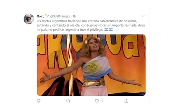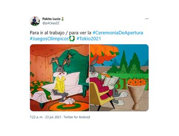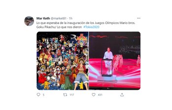 Varios de las publicaciones, sobre todo en Twitter, hicieron alusión a la falta de personajes como Mario Bros., Goku y Pikachu, entre otros dibujos animados ligados a la cultura nipona. Hubo también muchas manifestaciones de orgullo por la aparición eufórica de la delegación argentina y también por el destacado rol que tuvo Paula Pareto, quien fue una de las elegidas para llevar la bandera olímpica junto a otros deportistas de distintos continentes que trabajaron en centros médicos y hospitales durante la pandemia de COVID-19.