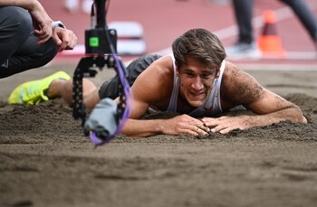 El atleta terminó rodando hacia afuera del foso para poder dejar libre la pista y fue atendido por los servicios médicos, antes de tener que ser retirado en silla de ruedas del estadio, dejando una de las imágenes más llamativas de estos Juegos.